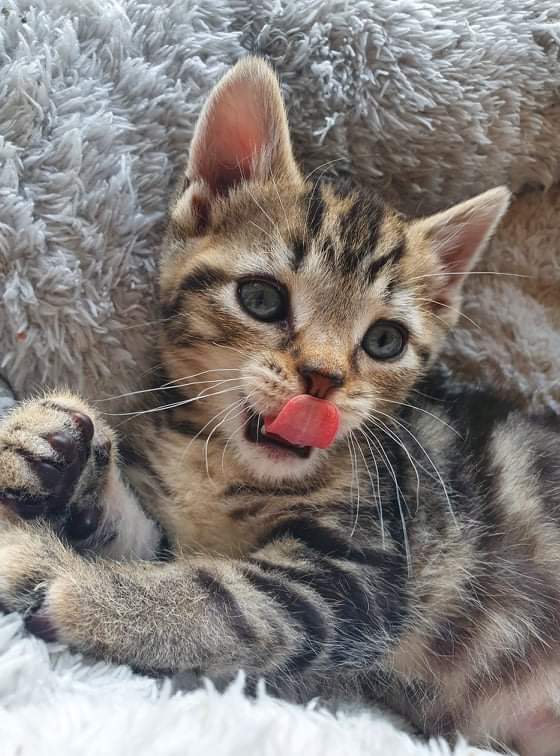 Leo the little tiger boi has the cutest spotty belly that will accept tummy rubs - for a price! One bite per rub! He is a playful and sweet little boy who can start shy but is quick to warm up and show his true playful personality.