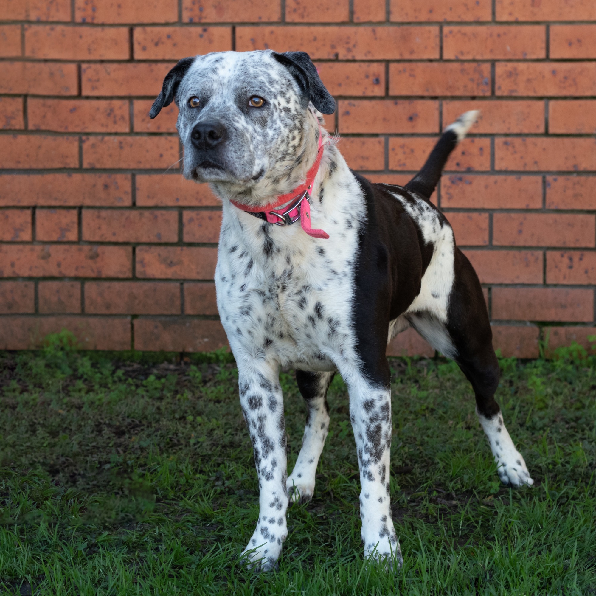 Look how gorgeous those spots are! Meet Franklin the Cattle x American Staffy born June 26th, 2018. Franklin is looking forward to meeting you!