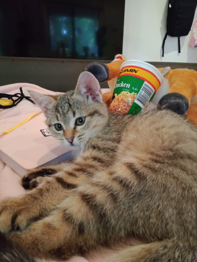 Both girls have great appetites - they like to have dry food as well as their baby kitten porridge - both can use the litter box. We would like to see the girls go to a home with a confident and friendly feline to help boost their confidence.
