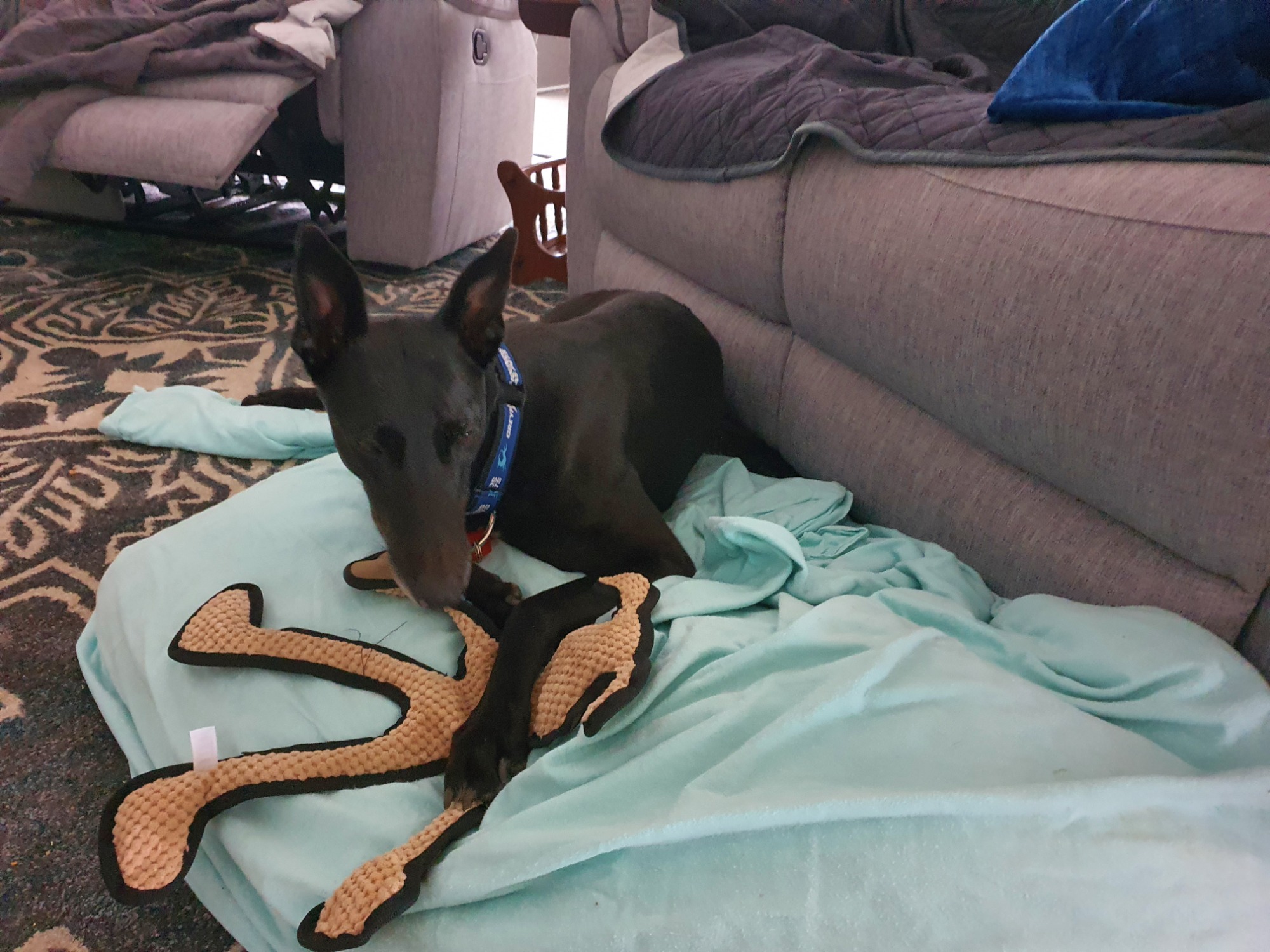 I adore people but haven't seen too many children, but the ones I have meet I have been very calm and polite with! I'm a bit scared of little dogs because they bark at me!! I will need a fully fenced yard for my amazing zooming abilities and enjoy long walks and car rides. I am excellent on lead and am very much a cuddle bug.