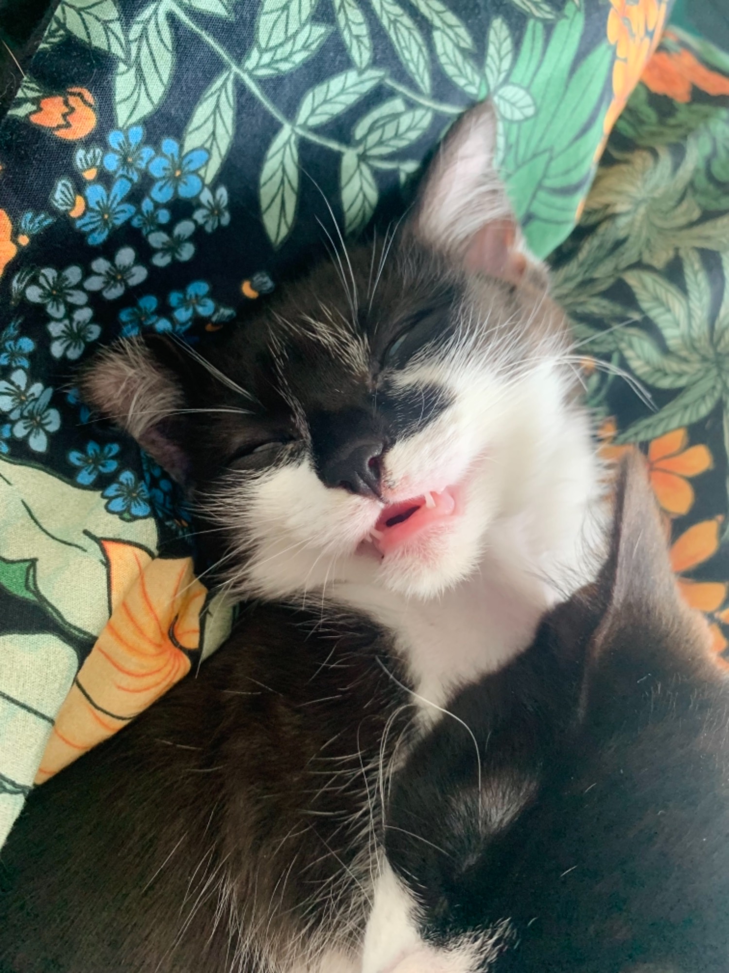 Although he cannot hear, this sweet tuxedo is no different to any other kitten 🐈⬛ Loki has an affectionate, cheeky and playful nature, making a great feline companion for an attentive and loving family ❤️ This kitten is outgoing and brave, and would easily make friends with any person or animal in an instant! 🐱🐶🐰 Silly and sweet, he will meow oh-so-loud, purr and roll over belly-side-up for your attention. Loki may also give you a soft, cheeky nibble, kisses on the face or make biscuits with his little toe beans to show you his contentment 🐾 Loki’s favourite activity is to zoom around chasing his kitten toys, and he also loves to explore new corners 🪶 When it’s time for rest, be assured that he will always be curled up amongst the blankets for your love and warmth 😴