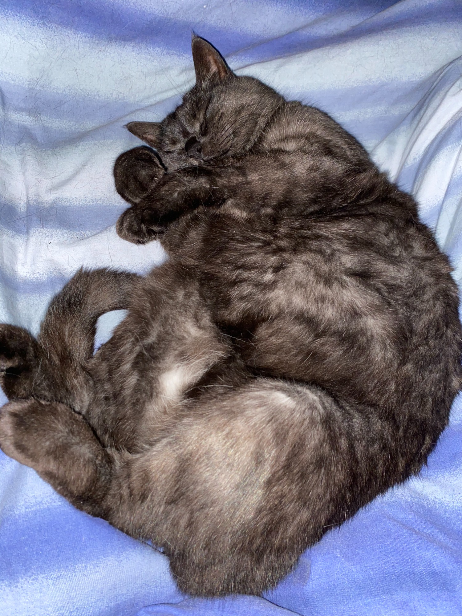 She is by far the most talkative cat, especially when she is hungry (which is most of the time), and will be very loud and vocal until you feed her. (Mornings she will seek you out and complain until you get up if she thinks you’ve slept for too long).