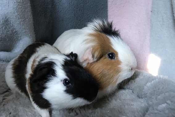 The both have tri-coloured fur and have settled in well together as friends. Both guinea pigs can be picked up and handled easily but would benefit from someone who has the patience to form a bond with them and earn their trust.