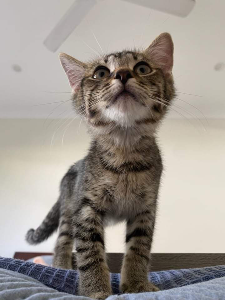 Meet Flounder, wherever you are in your down time, Flounder will be close by lounging about. This kitten loves his cuddles, to be held and walked around the house (his foster family is sure he’s just lazy) and like any kitten loves his playtime. He gets along well with other cats and would suit any home with attention and toys around.