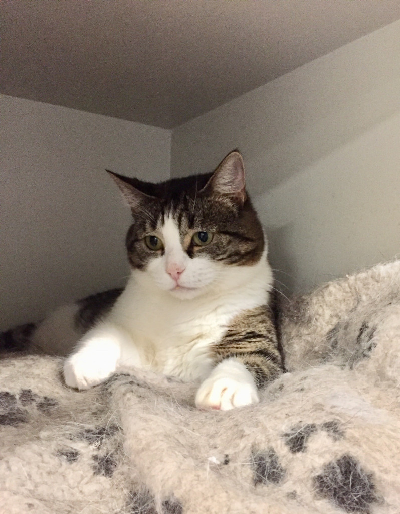 Peggy is actually quite a shy cat and she will take some time to adjust to a new environment. The ideal home for her will be quiet & calm with a single person or a couple.