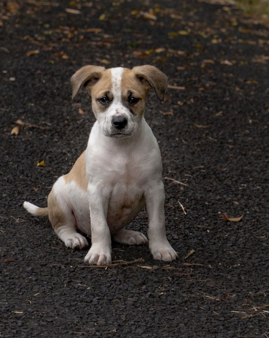This handsome boy was the runt of the litter, but his big personality makes up for it. Samwise loves rumbling with his big foster brother (German shepherd pup) and sister (cattle cross) and is growing up with two foster cats. He has also lived with chickens and children. He loves being in the action, wherever it is.