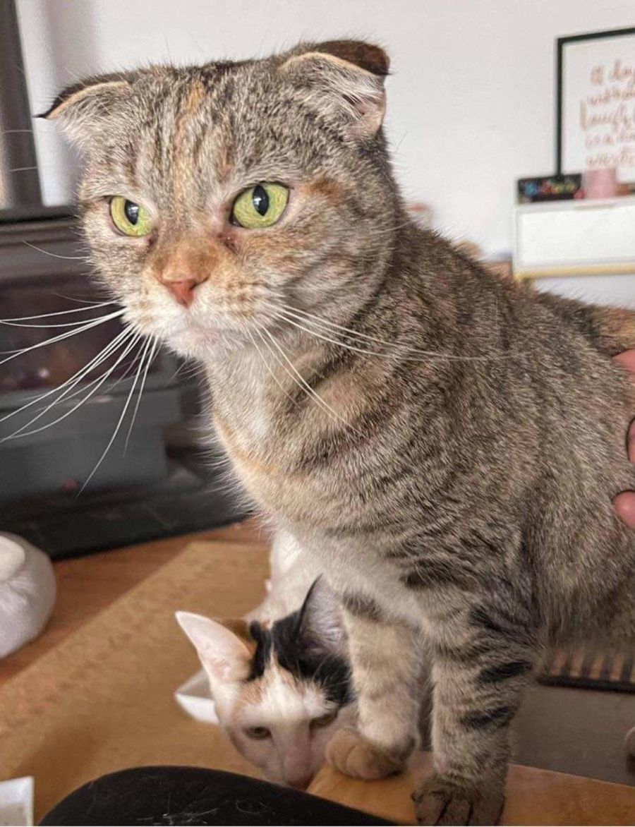 She loves people, loves dogs, enjoys lazing by the fire on cold nights and will purr in happiness when you rub her face.