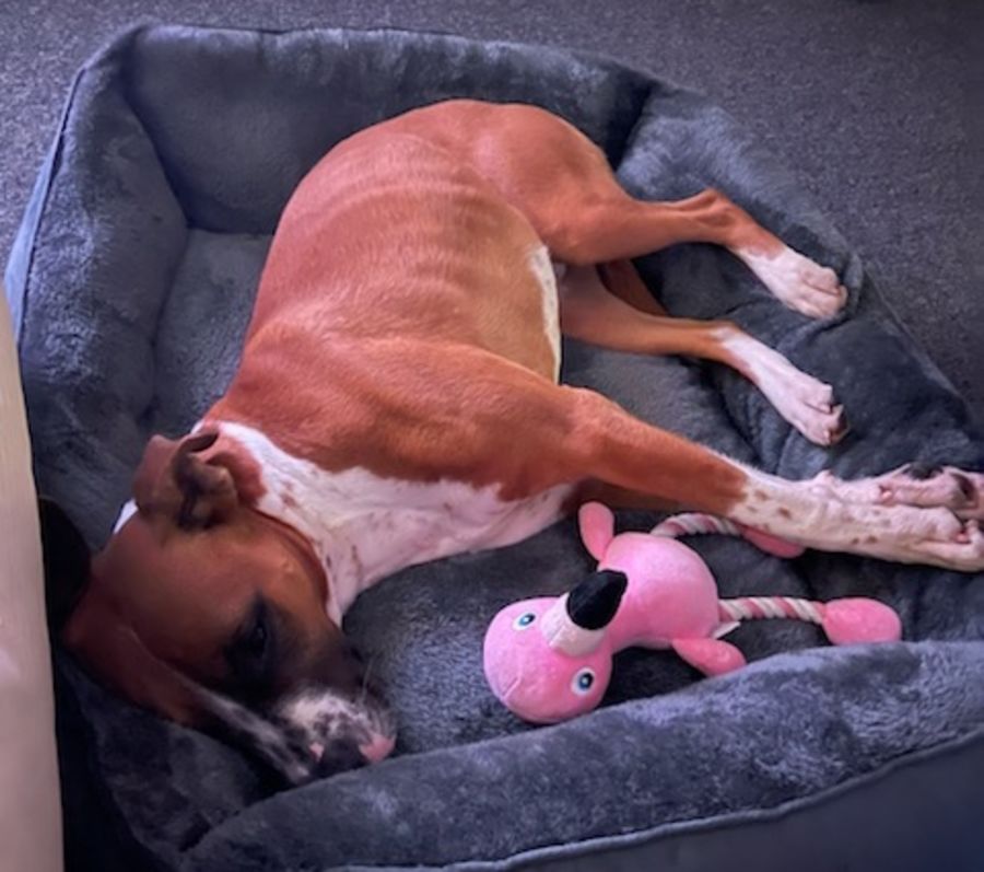 Rusty loves his comforts and comes inside at night and will “go to your bed” when given a treat. He will try to sneak up on the lounge next to you if given half the chance and has been sleeping on the end of my bed! He gets on well with my two ragdoll cats he will play with my 18 month old boy.