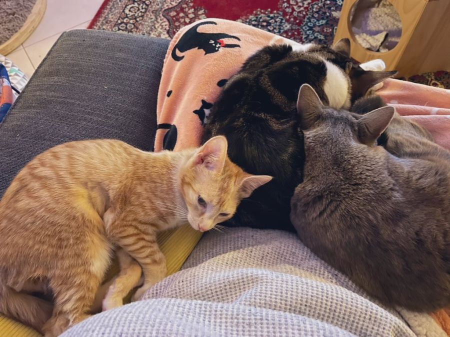 Little Bluey was rescued from an apartment parking lot by a kind carer. Now enjoying the safe indoor life, she is a confident, playful kitten who happily chases after her fellow fosters, but also enjoys plenty of lap cuddle and snoozes.