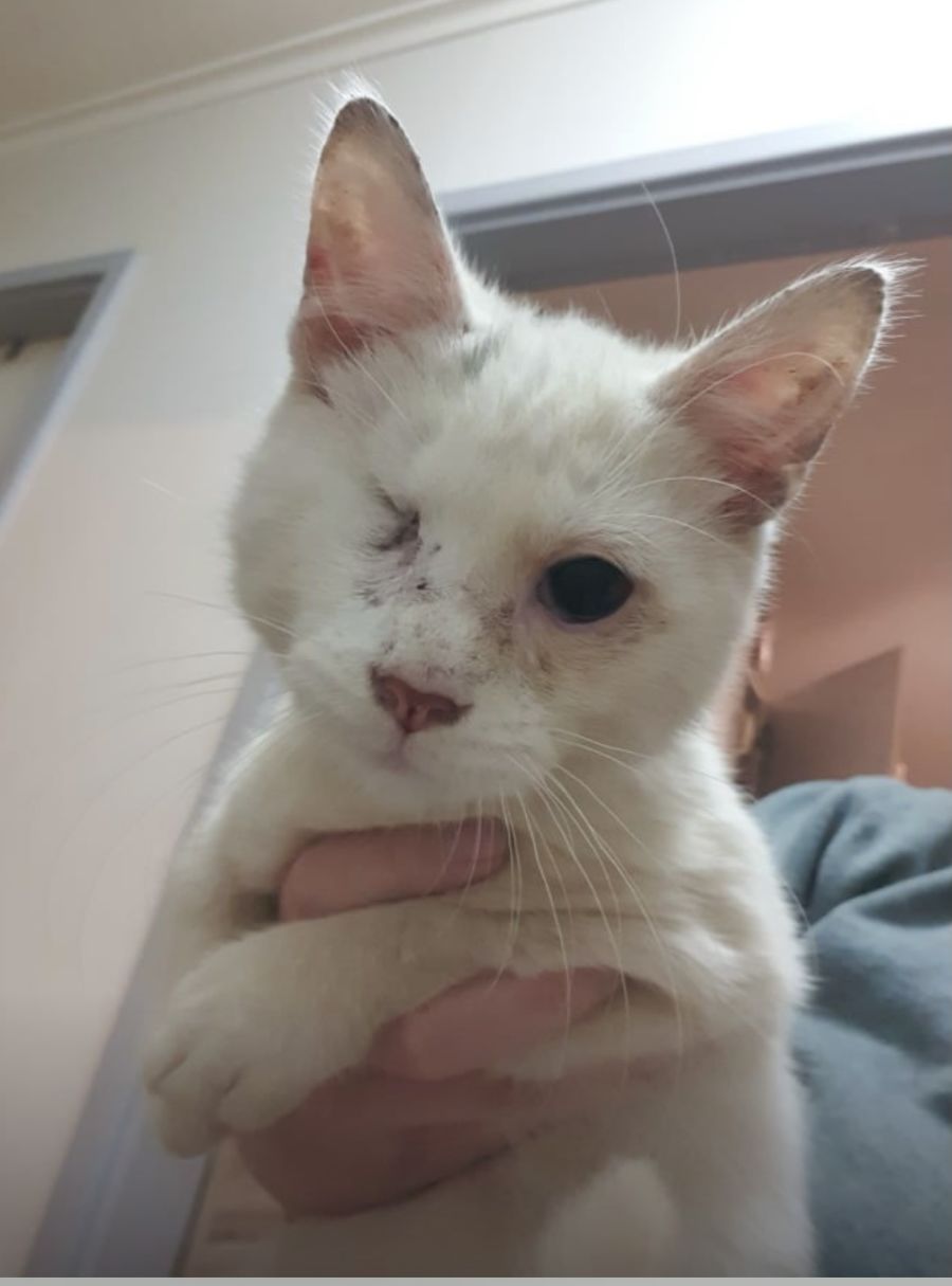 Jon Snow is playful, cuddly and friendly. He is good with children and other cats. He is a special needs kitten. Has had one eye removed due to being found at 6 weeks old with an injury to his eye.