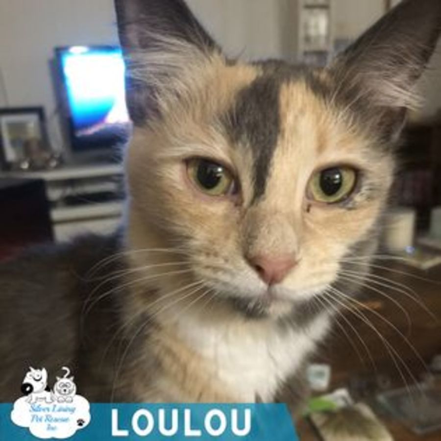 LouLou doesn’t mind being around dogs and loves to play and chase her kitten siblings. She hasn’t been around many children, but we feel she would love having some little people around to play with her.