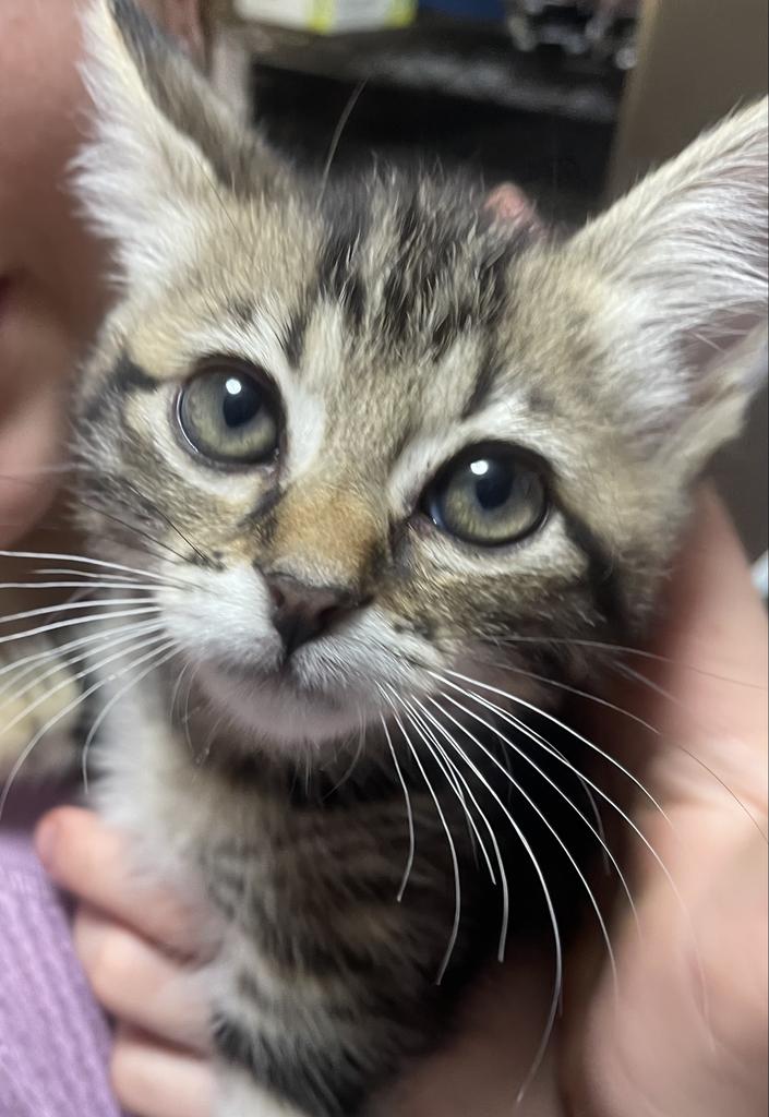 In care with other kittens and resident cats, and regularly handled by junior carers, Amelie is a confident and affectionate kitten who enjoys being part of a busy household. She enjoys a good game of zoomies but is also happy to watch the world from the top of the scratching tower. Amelie is untested with dogs but confident enough to adjust to a cat-friendly canine buddy. She has good manners and would easily integrate into a home with an older cat or would love to join a family with another kitten or catten.