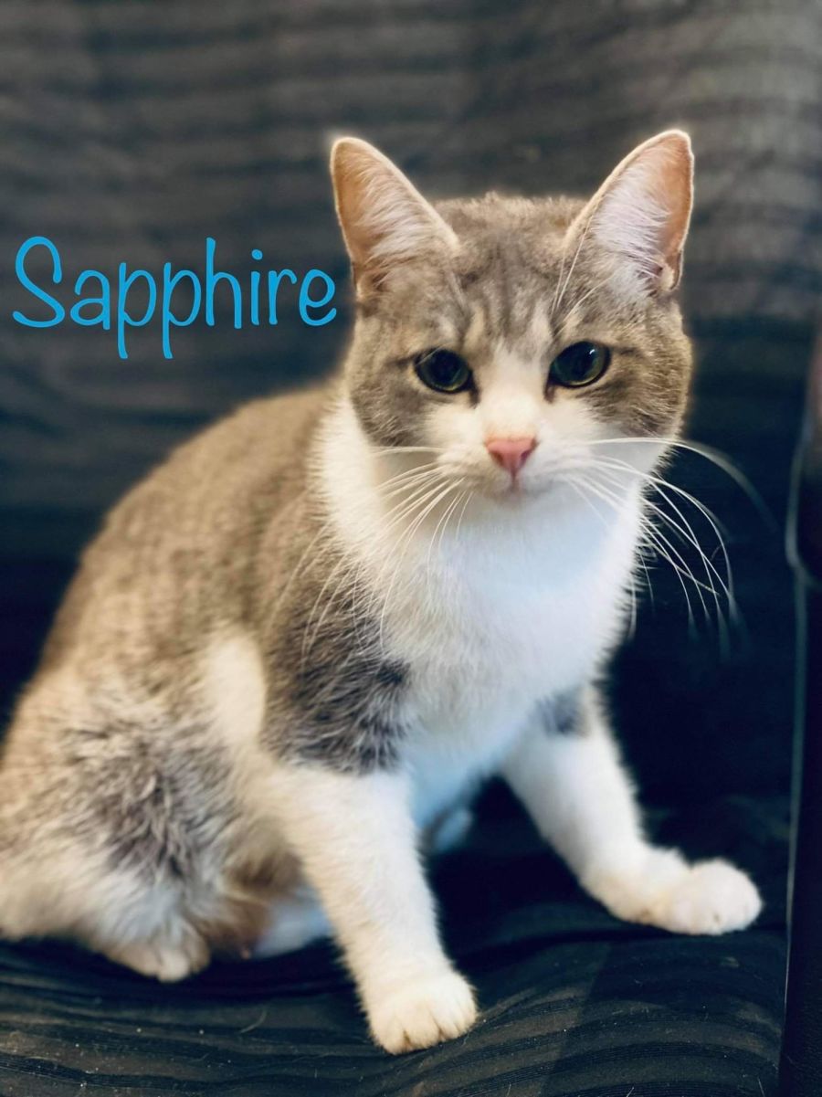 Sapphire doesn’t look like a chonk in her glamour shot but she has no self-control when it comes to available food. She will need her people to make sure she isn’t over-eating (it will be easier once she is away from her kittens so there is t extra food to steal). Regular, small meals of high quality kibble are a must. She does love a treat of wet food but we don’t recommend this as part of her regular diet.