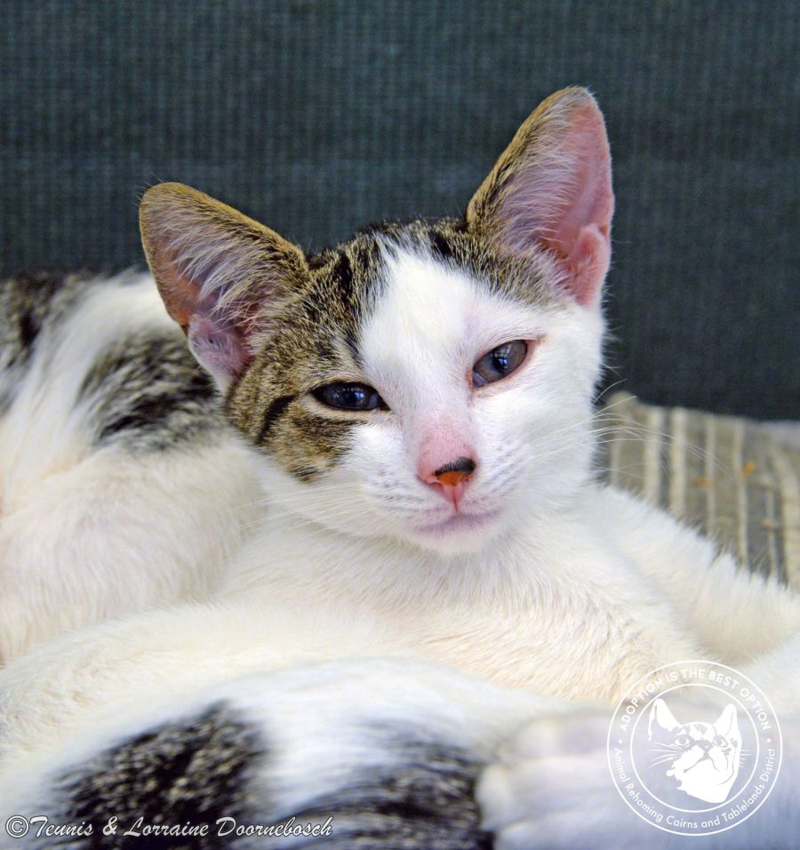 LIBBY is one of 11 kittens born to two dairy farm mums who abandoned the farm to have their babies next door, where there were no farm dogs to bother them. Luckily for them, the neighbor decided to look after the mums and rehome the babies and so did a great job of socialising every one of them. Libby is very friendly and will come looking for pats, cuddles and attention. She's a very gentle kitten and would fit into a home with gentle older kids, other cats and would make friends with friendly dogs.