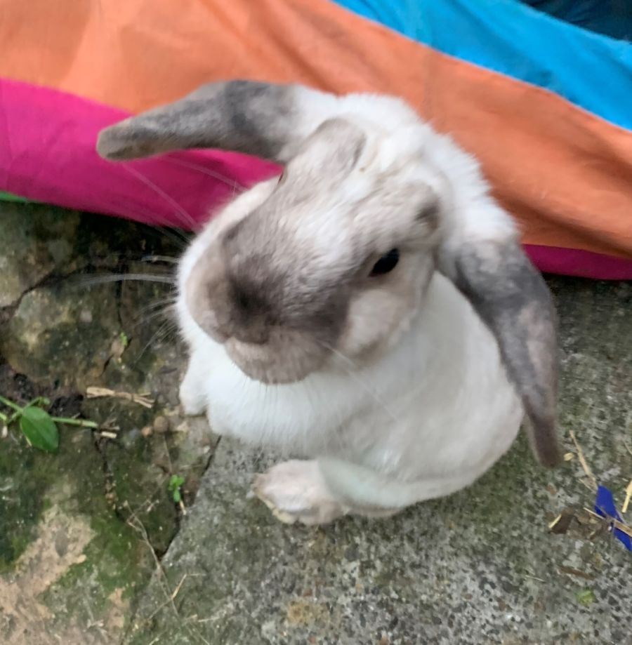 They are well litter trained, eat lots of hay and all other suitable rabbit food. In fact they are undemanding in every aspect. Great with adults and cats. Not much exposed to children or dogs yet. However they are gentle and can be picked up and cuddled and will spontaneously nuzzle your ankles.