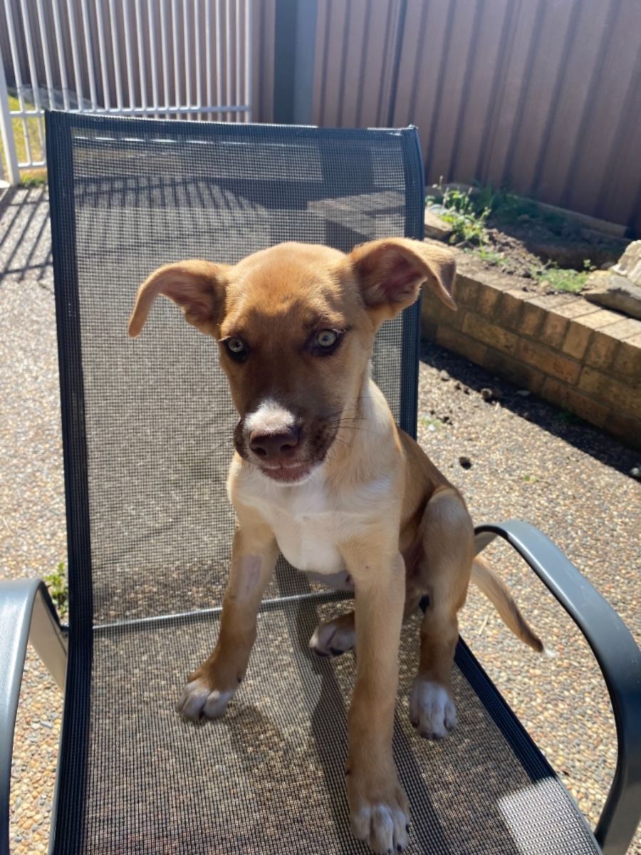 I was dumped at the pound and picked up by the lovely people at helping Hearts Animal Rescue so my background is a bit of a mystery. Their best guess is that I’m a kelpie mix. I currently live with 2 big resident doggos and a cat. I love playing with the doggos but I’m still a bit unsure about the cat.