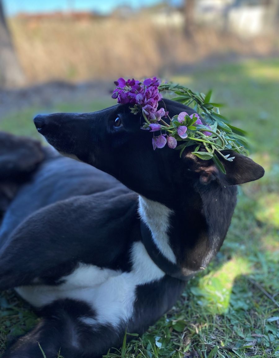 My name is Violet, and I am the goodest of girls. I love to have a cuddle, and play with my family. I currently live with three foxies and other elegant greyhounds like me! I have good doggie manners! I am also very gentle with children and even let them walk me on lead once I get my zoomies out ( Its more so the small humans don't get lost! got to keep an eye on them!). I have some chickens at the house I live at now, and I think they are pretty boring so I ignore them!