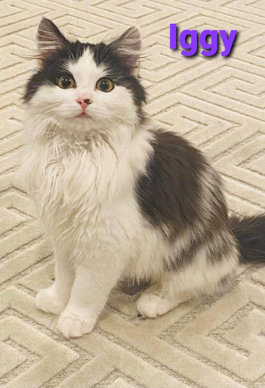 Iggy is a mixed bag of long hair kitten mischief. Iggy's estimated birth date is 11/4/2021.