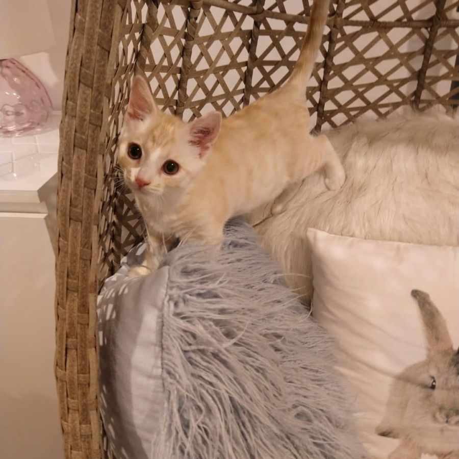 Rupert is a lively and playful kitten. He was a bottle-raised orphan, so he’s very used to being handled. He can get a bit silly and bitey when he gets excited, so older children only.