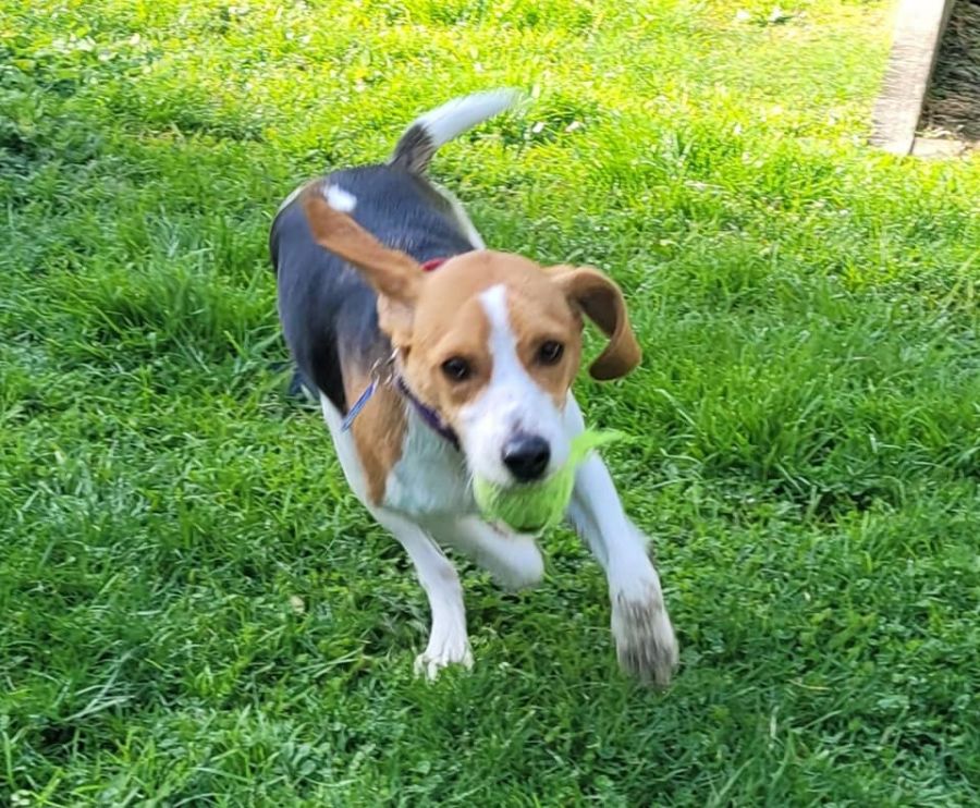 Hi I’m Toby, a 10 month old beagle. I’m young, and beautiful, and have a lovely temperament. I love to chase a ball, and I adore toys. I will amuse myself with toys endlessly, and I’m not stressed if I’m alone (although of course I would love to play with you). I’m dog and cat friendly. I’m crate trained and house trained, and I sleep quietly overnight.