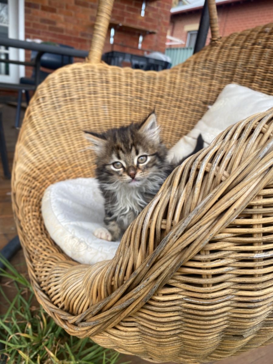 This fluffball is going on 10 weeks old and adores all of the attention to be on her. She is super playful and just adores curling up in someone’s lap after a good play date!