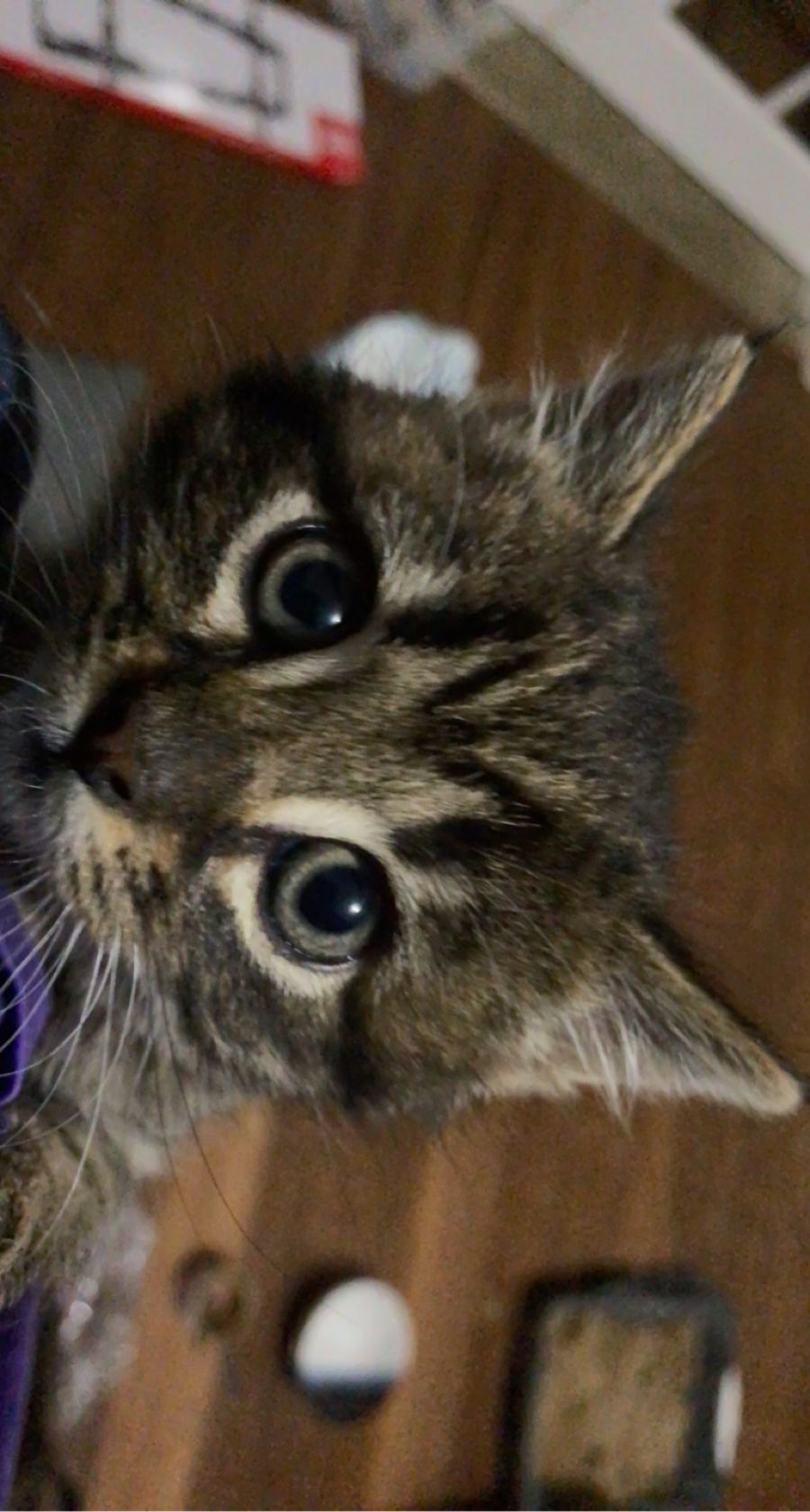 This cutie is going on 10 weeks old and adores all of the attention to be on her, even if she has to climb up to your shoulder for it. She is super playful and just adores curling up in someone’s lap after a good play date!