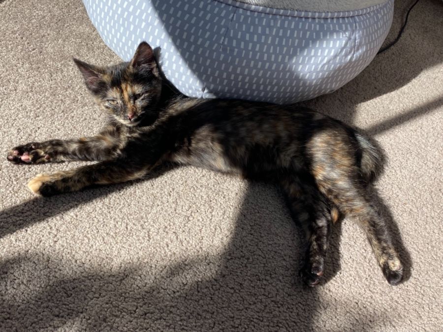 Like all kittens, Maple has a lot of energy to burn and will need a home ready to help her learn how to be a well-mannered cat. She loves toys and toes and shoelaces. Maple is very food focused and would likely be a good candidate for learning some simple tricks!