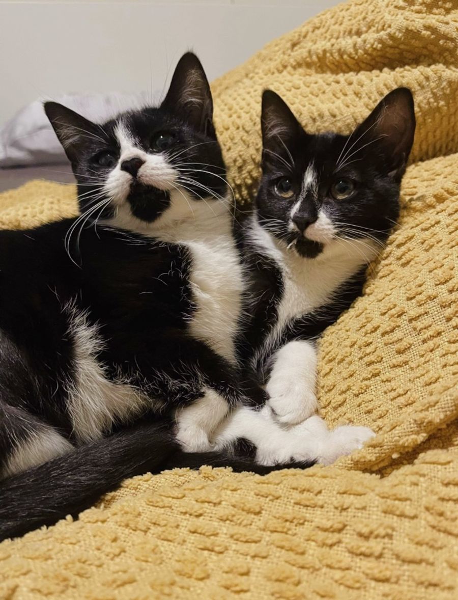 Meet Magpie (Maggie) and Crow (Ro), our beautiful tuxedo twins! 🐱🐱 These sweet girls will steal your heart with how adorable they are together 💞 Maggie and Ro love to nap together, cuddling and sleeping side by side for warmth 😴 They are fond of chasing after their kittens toys and are extremely playful when you get involved too! 🧶 Maggie and Ro will spend time perched on the window sill, watching the world go by under the warmth of the sun ☀️ Together, this bonded pair have so much love to offer. Maggie is the most affectionate of the two and loves to give you kisses on the hand 🤚🏻 As soon as you give her scratches under the chin, she will begin to purr and allow you to touch her tummy showing you that she trusts you. Ro enjoys watching from a distance, but will soon follow suit, wanting your cuddles and affection too! 🥰