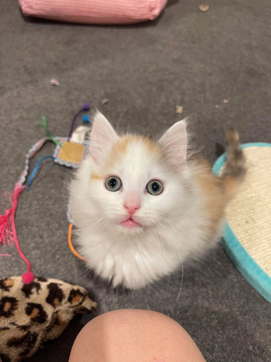 Dulcie arrived into foster care at three weeks old age after being transported from a rural pound with her mum and three sisters. Although she is still standoffish from time to time, Dulcie has become more and more receptive to human love and touch since being in foster care.