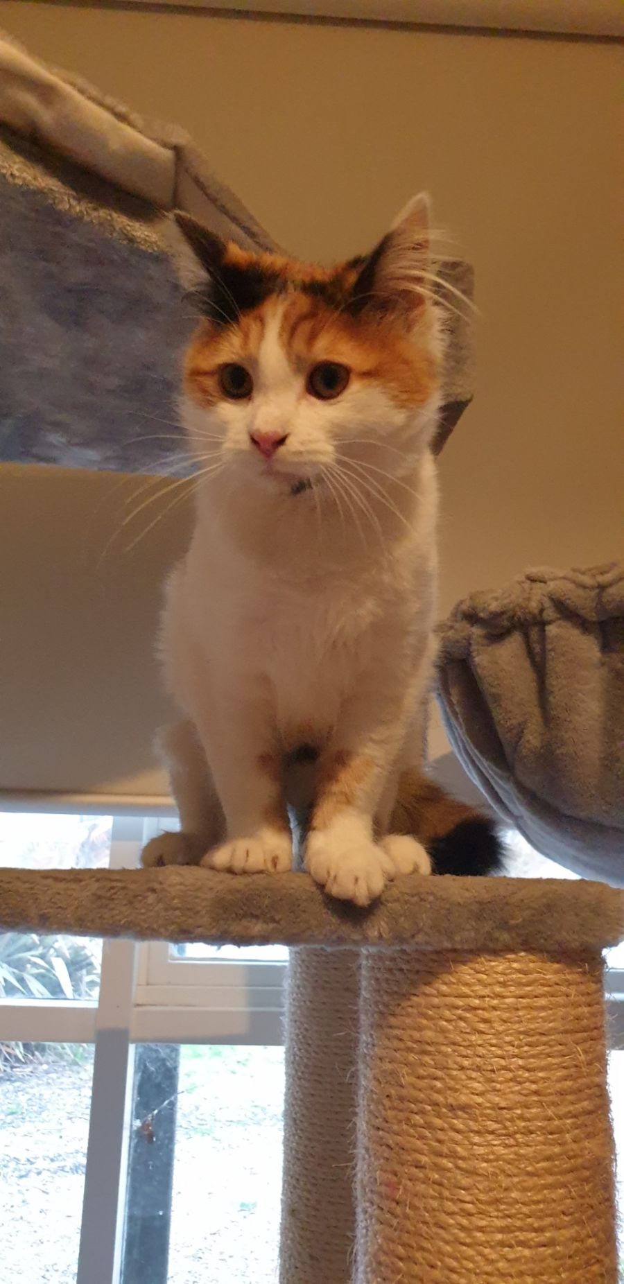 Introducing the stunningly gorgeous Penelope. This happy smoochy girl will smother you in love, she starts purring when she runs to meet you as you walk in the door and doesn't stop. She is very playful and loves to play with her human and toys. She is happiest when she is close to you but does fine while your away at work as long as she has toys to help keep her entertained and a cosy sleeping spot. She will do fine with another cat but dogs scare her.