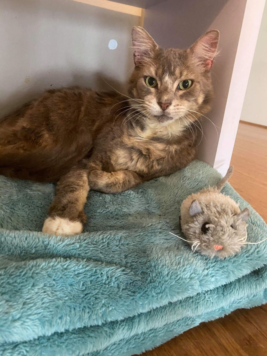 I'm a gorgeous grey fluff ball, super cuddly, playful, vocal, and always in need of a pet.