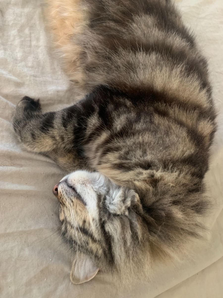 Tina is a quiet affectionate girl. She adores being patted, responding with purrs, chin rubs and head bops. And it’s hard not to stop patting her with that gorgeous soft coat!