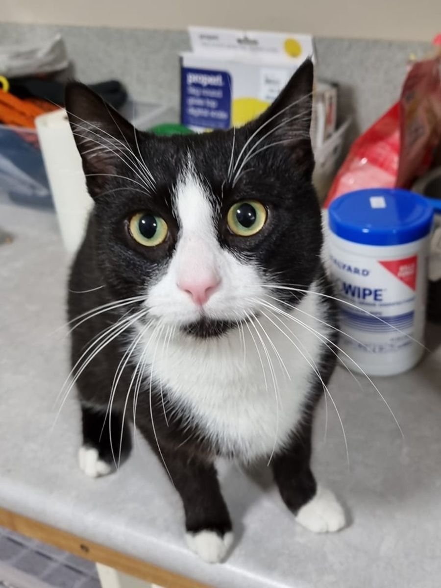 Imp 89 Hollis. Hollis is a black and white male domestic cat, approx. 9 months old. Hollis came to the shelter as an injured stray from the Wauchope area, but is now on the mend. He didn't like his new accommodation or hosts to start off with, he would just lay in his bed feeling sorry for himself. With persistence and plenty of love with shy boy is now the most affectionate boy in our cattery. He doesn't seem to want siblings, so Hollis will need to be the only cat in the household. His adoption fee is $200. He is microchipped, registered, desexed, vaccinated, wormed and flea treated. Please call 6583 3488 if interested to book an appointment.