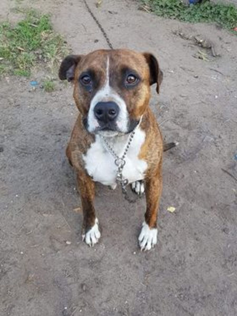 Butch is a friendly staffy x and sadly he is looking for a home as his owner has lost his job and home through Covid