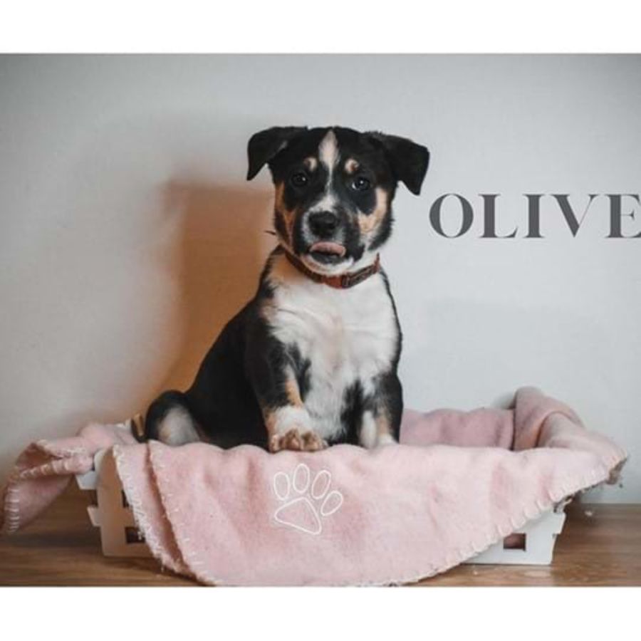 Born into a litter of thirteen, Olive and her siblings were lucky enough to come into care with their incredible mama, Athena rather early and as a result have had a wonderful start to life. They are all confident, happy and adventurous puppies who are now ready for their next journey, into their forever homes.