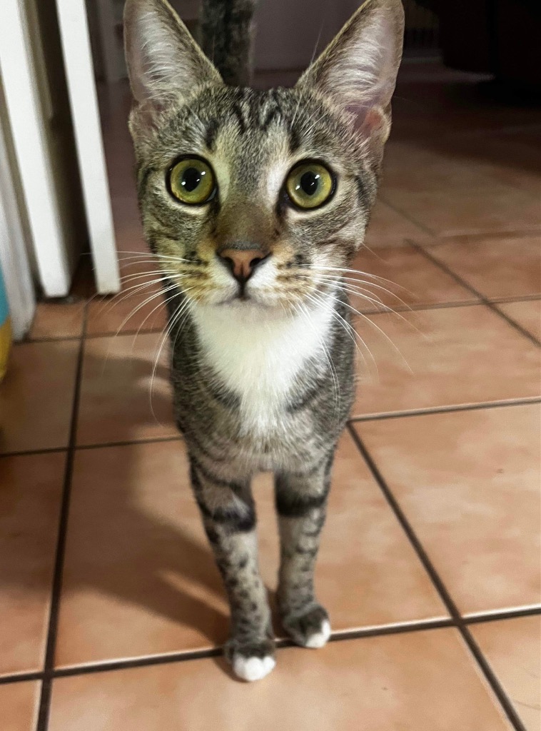 Meet Master Bonsly - one of three kittens that came with mother cat Sibylla. Bonsly is a cute character and the boss of his siblings - the bravest little kid - Bonsly and his siblings are in a busy feline and canine home and are not scared one bit!