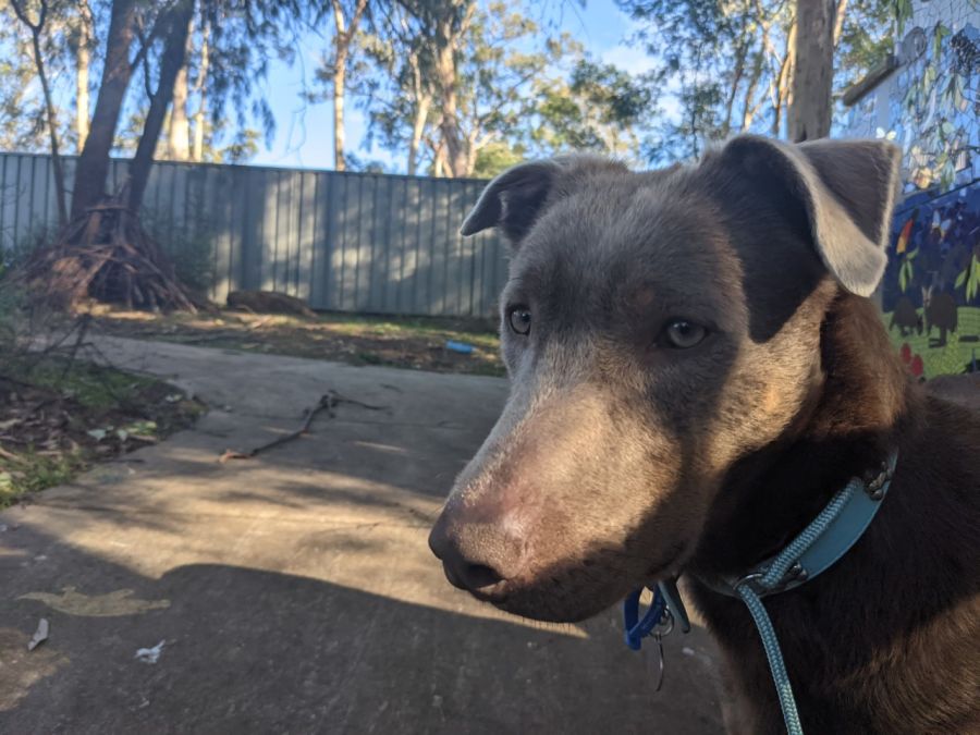 I want to just hang round and see what you're doing - going for walks, playing in the bush, just chilling at home ... as long as I'm included, I'll be happy. Foster Dad can't try me out with kids or other furry pets yet, but I reckon I'll be gentle with them. He has shown me sheep, they were fun and I'd like to play with them a bit more if I'm allowed.