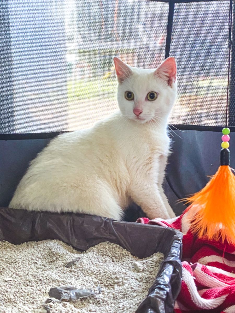 Unicorn also needs to be an indoor only cat as she is prone to cancers and already has existed scars to her nose and ears from the rough life she was living.