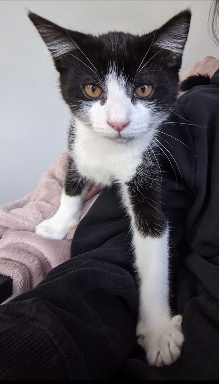 Hi everyone, I'm Gordon. I'm the perfect balance of adorable moosh, playful pal, and snugglebuns. I like to chase my foster mums around the house asking for attention. I will tire myself out playing and then snuggle up into their arms. I am from a litter of 9 so I'm used to being around other kitties and I enjoy both human and feline cuddles.