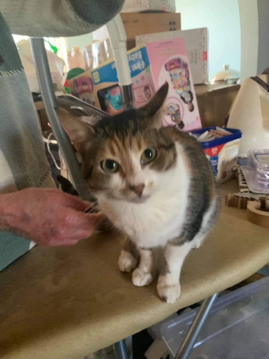 Petal is a white calico. She was found on the street with her six babies five weeks old, they have all found there forever homes but poor Petal is still looking for hers. She is litter trained very affectionate thinks she is a kitten as loves playing with toys. Petal loves her food and will let you know when she wants it she also loves to be cuddled.