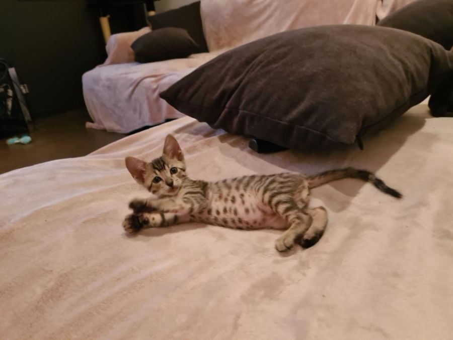 George is a playful boy who like most bottle raised kittens, loves his human friends. He loves to sleep in the bed every night and will always be ready for belly scratches. He loves other cats and people.