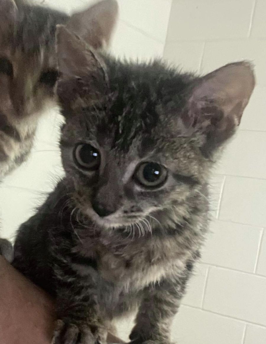 Meet the cutest little dude to walk earth side, little Miss Fern. She is a very little kitten with a very big heart. Her favorite pass times are cuddles, snuggles, pats and riding shot gun on your shoulder. She loves anyone and everyone from foster mum, to kids and her foster doggos siblings.