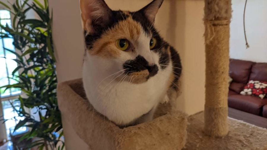 Pricilla was adopted, and returned due to allergies. She proved to be a highly affectionate and undemanding family member. She was very happy to curl up on a chair next to her Dad, and supurrrvise while he worked from home