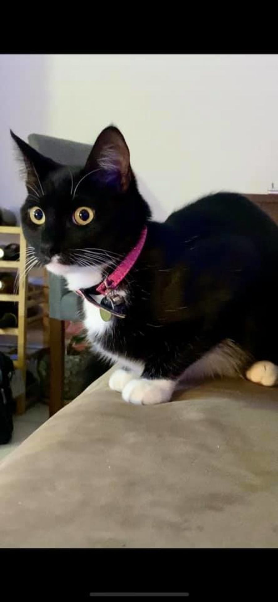 A little timid at first she was soon playing with the other kitten in care. McKenzie is stunning with her big long white whiskers against her shiny black coat. And she has beautiful big yellow eyes.