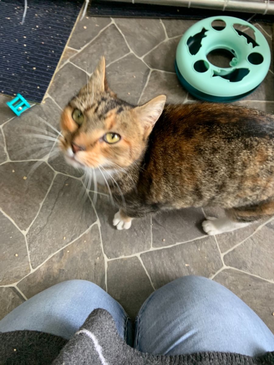 Perfect cat for a lonely person, although she may be shy at first until she gets to know you then she’ll make a wonderful companion.