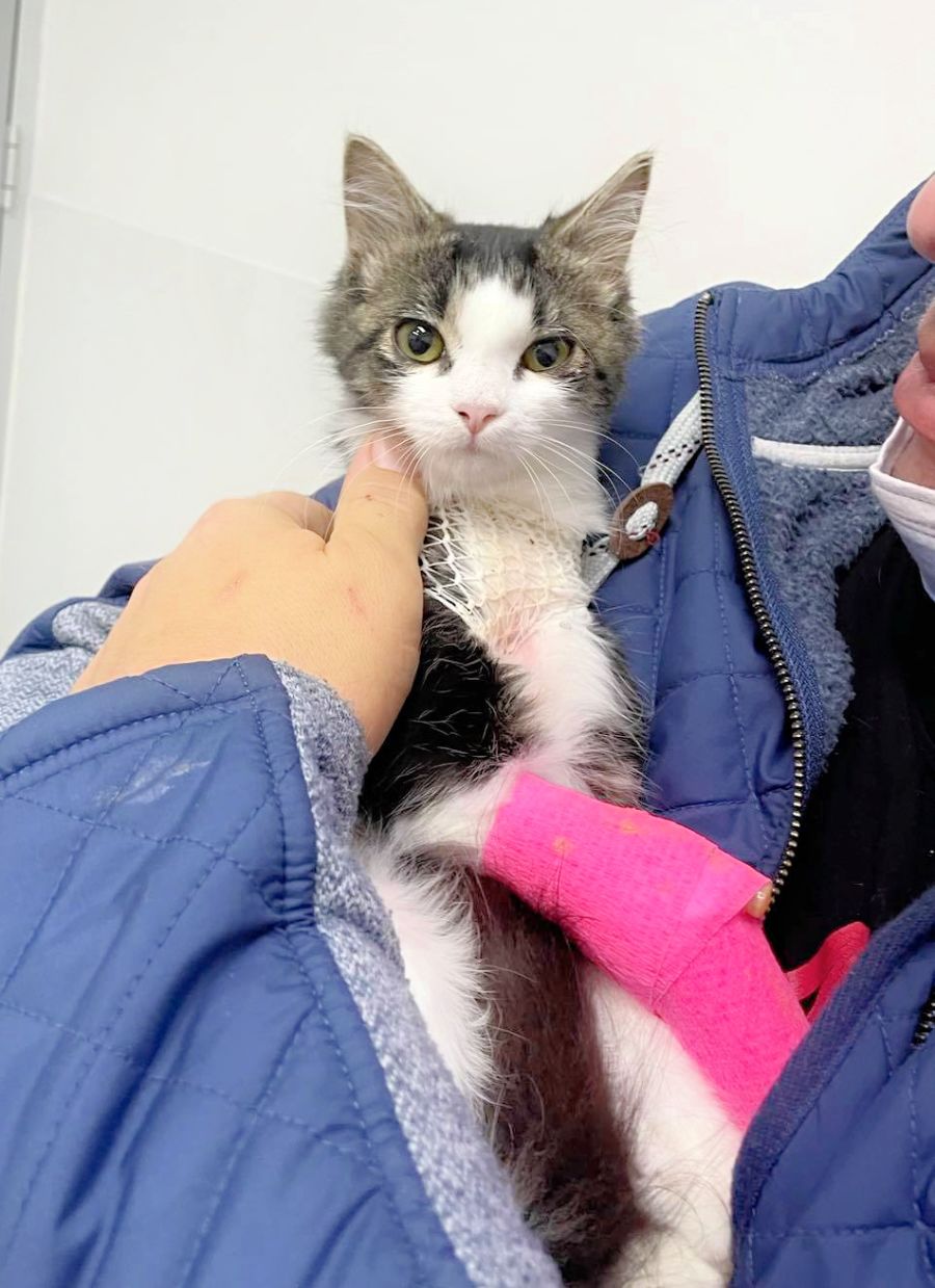 Scramble’s surgery was a success and she is now a normal, happy kitten with a nice roomy chest. There is no reason to think Scramble will have any ongoing issues, now that her sternum is a healthy shape, but obviously should she ever need surgery for anything, the vet would need to be aware of her previous corrective surgery and of course we will provide her medical history to her new home.