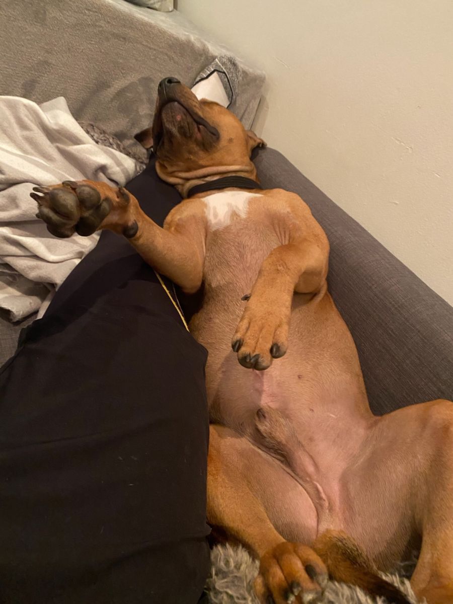 Buddy is quite strong and still learning to not pull on a lead, Buddy is very jumpy and expresses his excitement by jumping up on people, regardless whether that’s on a walk or a new person entering the house. When he gets excited, he doesn’t really listen to command ‘down’. Rather common for Staffies, he play bites on arms and is yet to learn not to do so. This is very gentle and he doesn’t actually bite.