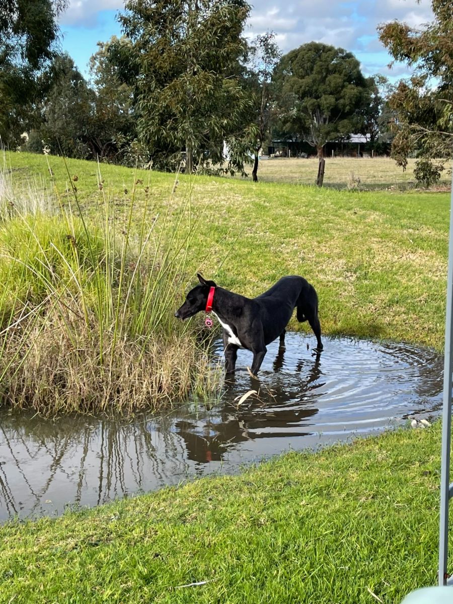 fun loving relaxed, does amazing zoomies, and loves the pond for a paddle.