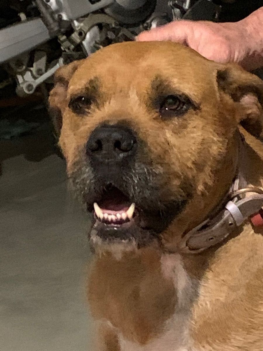 Beautiful Mary, a Boxer Wolfhound mix, is just a lovely natured girl who is blossoming in care thanks to her foster care family.