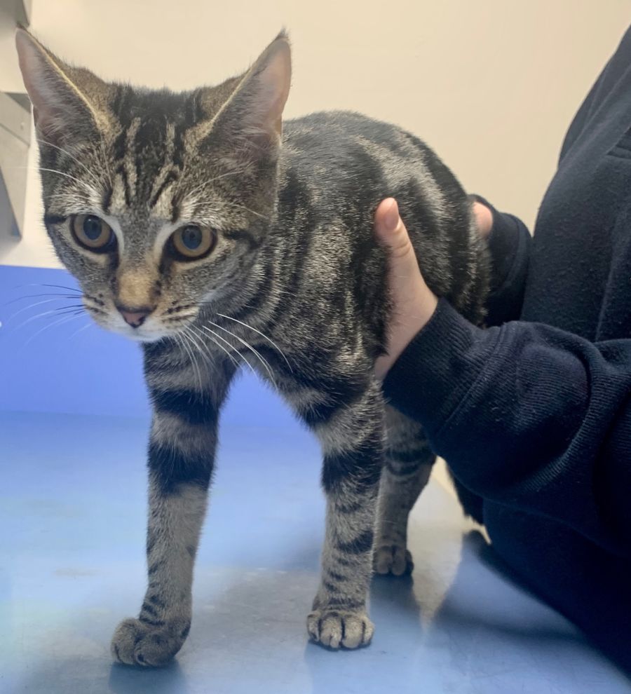 Caterina is a bit more shy than her siblings. She loves their company and can be a bit wary without them around. This won’t take long to change once she settles into her new surroundings. She gets on with other kittens and some cats. It wouldn’t be hard to introduce her to dogs if they have the right temperament and don’t scare her. She is an affectionate and playful baby once she comes out of her shell. Someone will be very lucky to adopt her.